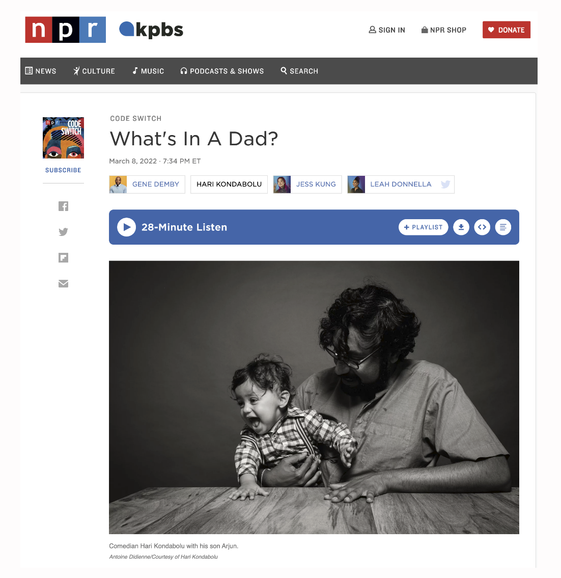 Imagine my surprise as my eyes are bugging out when I notice that the alert is for a mention on NPR and that one of MY photos is featured (and credited) in an interview with Hari Kondabolu about the meaning of fatherhood.